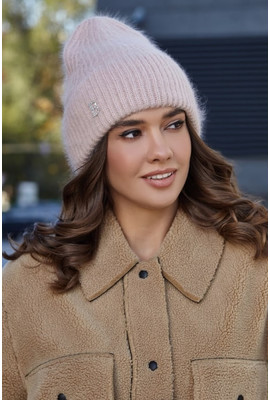 Изображения Шапка-колпак с подворотом и флисовой полосой (ангора) - 4939 пудра - Интернет-магазин - ELENKA