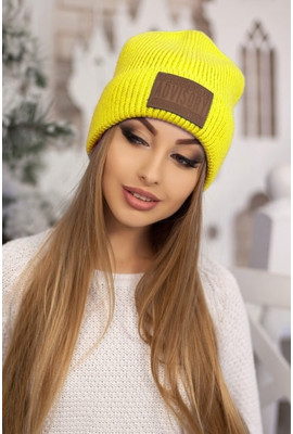 Изображения Молодежная женская вязаная шапка-колпак "Бруклин" - 4463 желтый - Интернет-магазин - ELENKA