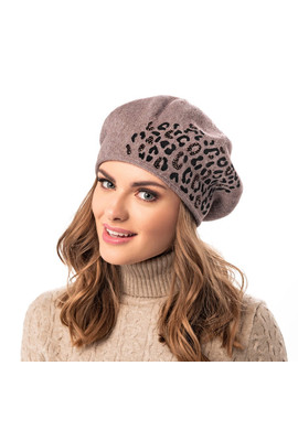 Вязаный берет с модным леопардовым узором "Bodega" - 4926 тёмный беж - Интернет-магазин - ELENKA