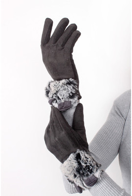 Женские замшевые перчатки с меховым декором "Леон" - PER1810 серый