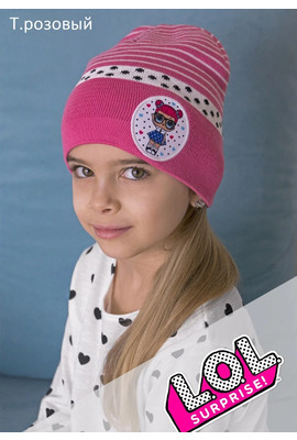 Крутая шапка с подворотом для девочек Lol (вышивка светится) - 135 темно-розовый