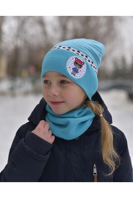 Крутая шапка с подворотом для девочек Lol (вышивка светится) - 135 голубой