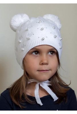 Детская двойная шапочка для девочек c бусинками и стразами (1-6 лет, р.46-54) -100 белый