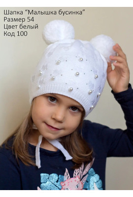 Главная страница Детские головные уборы Детская двойная шапочка для девочек c бусинками и стразами (1-6 лет, р.46-54) -100 белый