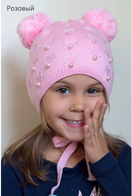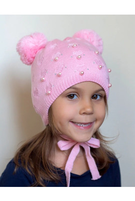Детская двойная шапочка для девочек c бусинками и стразами (1-6 лет, р.46-54) -100 розовый