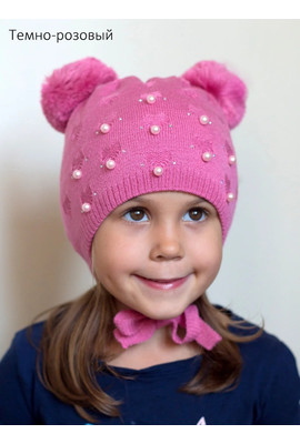 Детская двойная шапочка для девочек c бусинками и стразами (1-6 лет, р.46-54) -100 темно-розовый