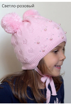 Детская двойная шапочка для девочек c бусинками и стразами (1-6 лет, р.46-54) -100 светло-розовый