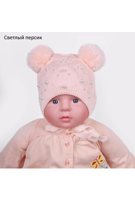 Главная страница Детские головные уборы Детская двойная шапочка для девочек c бусинками и стразами (1-6 лет, р.46-54) -100 светлый персик