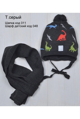 Изображения Шапка для мальчиков динозаврики 2-4 лет (светоотражающий логотип) - 011 темно-серый - Интернет-магазин - ELENKA