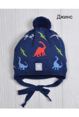 Шапка для мальчиков динозаврики 2-4 лет (светоотражающий логотип) - 011 джинс