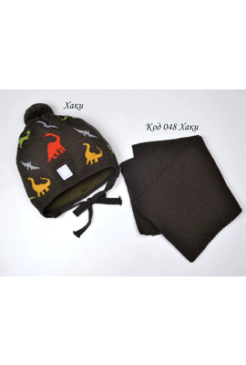Шапка для мальчиков динозаврики 2-4 лет (светоотражающий логотип) - 011 хаки