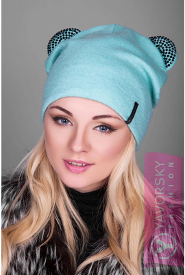Модная шапка с ушками - 127 ментол