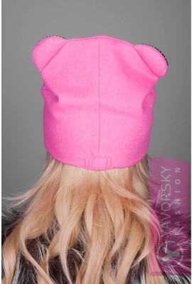• Модная шерстяная шапка с ушками. Ушки пришиты и обшиты высококачественными декоративными камнями.