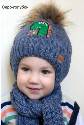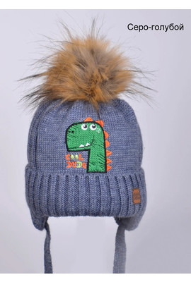 Главная страница Детские головные уборы Зимняя шапка для мальчика (1-2 года) с махровым мехом Дино - 070 серо-голубой