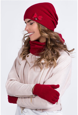 Элегантный польский шерстяной комплект Элинор (берет+шарф) 001 красный