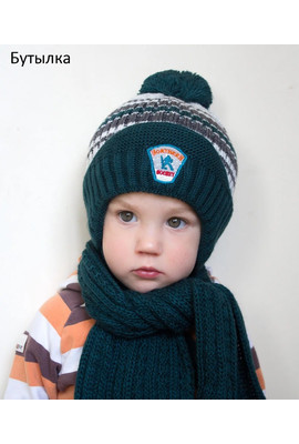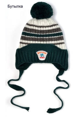 Зимняя шапка для мальчиков 1-2,5 лет (р. 45-49) с ушками и завязками "Хоккей"- 063 бутылка