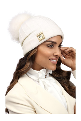 ШАПКА С ПОМПОНОМ ИЗ МЕХА ПЕСЦА - WH 572 капучино