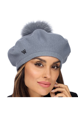 Шерстяной берет с помпоном "Флорас" (Floras) - 689 серый туман