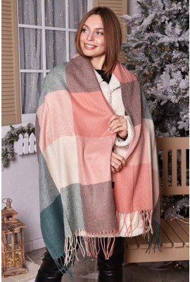 Изображения РАЗНОЦВЕТНЫЙ ТЕПЛЫЙ КАШЕМИРОВЫЙ ПАЛАНТИН - 7008 зелёный+бежевый+тёмная пудра - Интернет-магазин - ELENKA