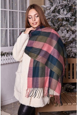 РАЗНОЦВЕТНЫЙ ТЕПЛЫЙ КАШЕМИРОВЫЙ ПАЛАНТИН - 7008 тём.синий+хаки+розовый