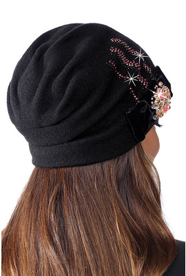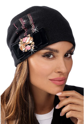 Польская шапка с брошью "Тива" (Tiva) - 018 чёрный