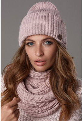 Женский комплект шапка и хомут "Барбара" - 1719 пудра