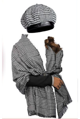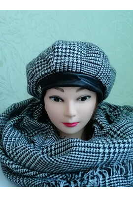 Главная страница Шапки ТМ Willi Модный польский комплект Willi из берета и шарфа "Лови" (Lovi) - К05 чёрно-белый