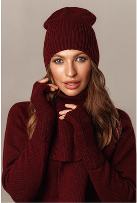 Женский вязаный набор из шапки и шарфа "Каприс" - 2025 бордовый