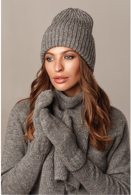 Главная страница Женские шапки Осень-Зима ШАПКА ИЗ КАШЕМИРОВОЙ ПРЯЖИ "БАРБ" - 2023 тёмно-серый