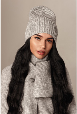 ЗИМНИЕ ВЯЗАНЫЕ ШАПКА И ШАРФ "ДОРИН" - 2024 серый