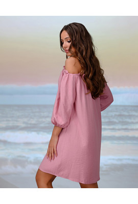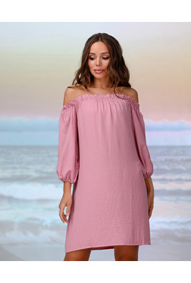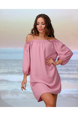 Льняная пляжная туника - 207-034 пудра, р. 42-44