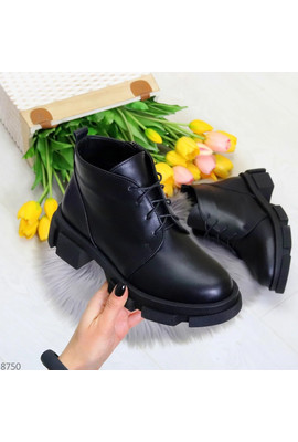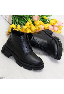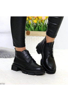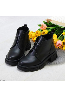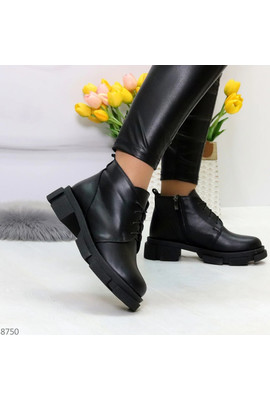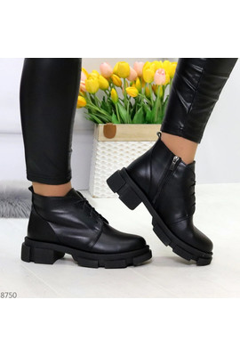 Главная страница Демисезонная женская обувь Черные ботинки из натуральной кожи молния + шнуровка - 8750