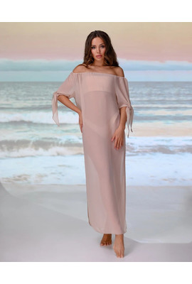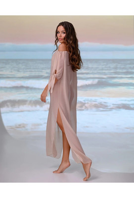 Трендовая длинная пляжная туника со спущенными плечами - 209-010 беж