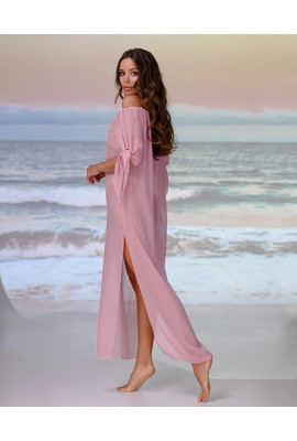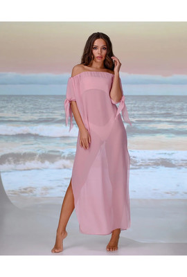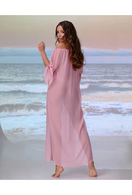 Трендовая длинная пляжная туника со спущенными плечами - 209-034 пудра