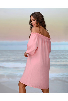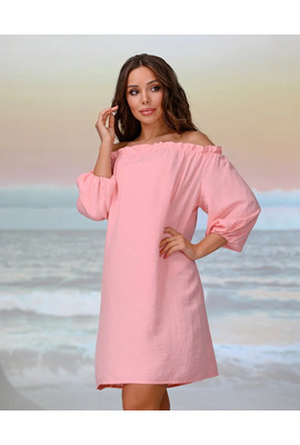 Короткая пляжная туника со спущенными плечами - 207-046 персик, р. 42-44, 46-48