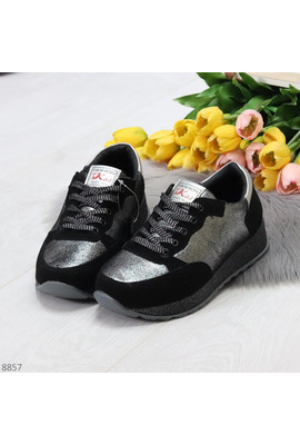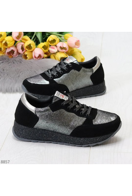 Серебристые черные молодежные женские кроссовки натуральная замша с напылением "Dilax" - 8857