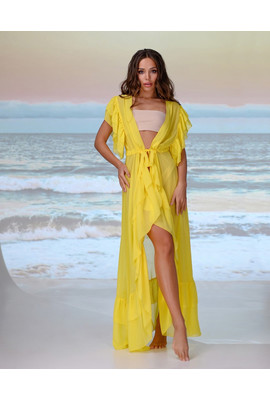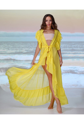 ПЛЯЖНАЯ ДЛИННАЯ ТУНИКА С ВОЛАНАМИ - 002-082 жёлтый