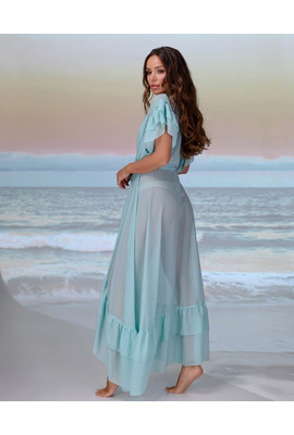 ПЛЯЖНАЯ ДЛИННАЯ ТУНИКА С ВОЛАНАМИ - 002-007 цвет тиффани