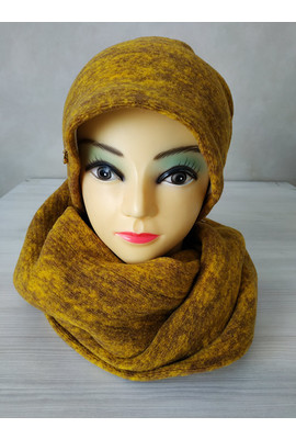 ТРИКОТАЖНАЯ ШАПКА И ХОМУТ "КАНДЕЛАС" - горчичный - Интернет-магазин - ELENKA