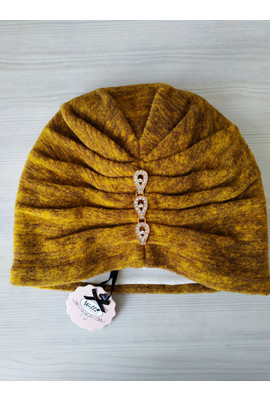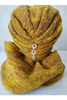 Цвет: горчичный. Женская шапка-бандана из трикотажного шерстяного полотна, на подкладе из флиса. Сзади - мягкая драпировка складок, украшенная брошью со стразами. Снуд-восьмерка прекрасно дополняет шапку. Страна производитель: Польша Фирма производител...