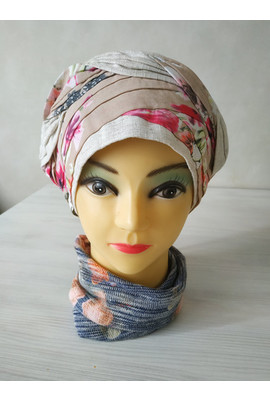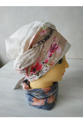 Льняная бандана-чалма Morozkin со вставками из коттона 565-2