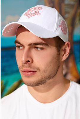 Главная страница Мужские головные уборы Стильная мужская кепка «Wolf-M» с логотипом - 1300 белый+розовый