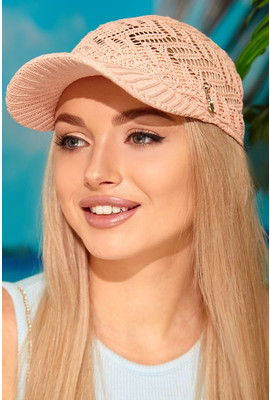 Красивая ажурная вязаная женская бейсболка кепка - 4957 кремовый