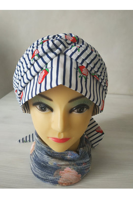 Летняя хлопковая бандана-чалма "Клубнички" 230408