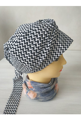 Главная страница Женские летние шляпы и кепки Летняя хлопковая бандана-чалма Зиг-заг чёрно-белая 230307