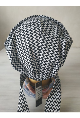 Летняя хлопковая бандана-чалма Зиг-заг чёрно-белая 230307