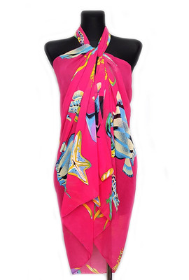 Пляжное парео малинового цвета в принт рыбки 901 - Интернет-магазин - ELENKA
