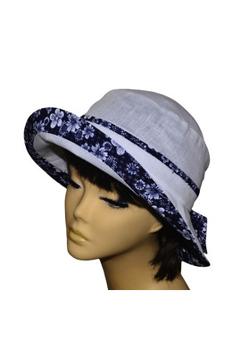 Летняя льняная шляпа "Поляна" - 2004 белый+ тёмно-синий