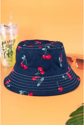 Главная страница Женские летние шляпы и кепки Панама с принтом вишни тёмно-синяя 1064