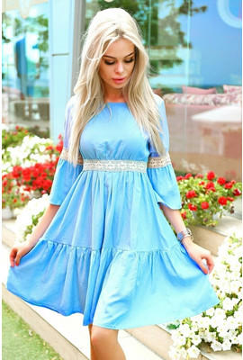 Летнее льняное платье с кружевом 9185-1 голубое - Интернет-магазин - ELENKA
